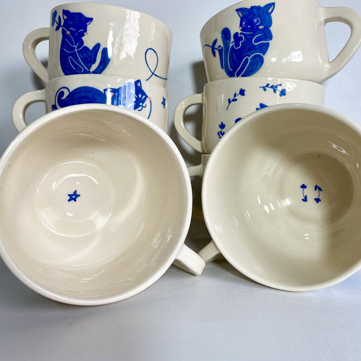 El tazón de gatitos es el mismo con un gatito diferente en cada lado*