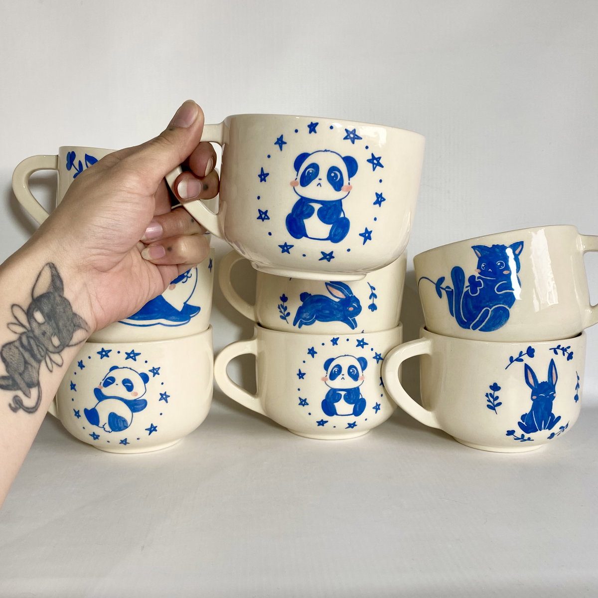 Tazón de cerámica ilustrada a mano.
