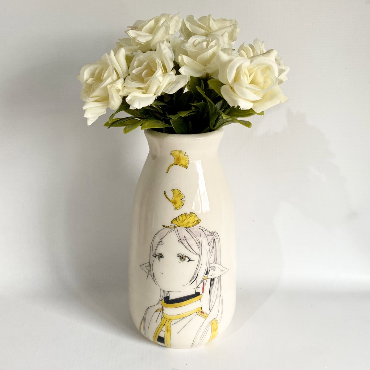 Florero de cerámica ilustrado a mano.