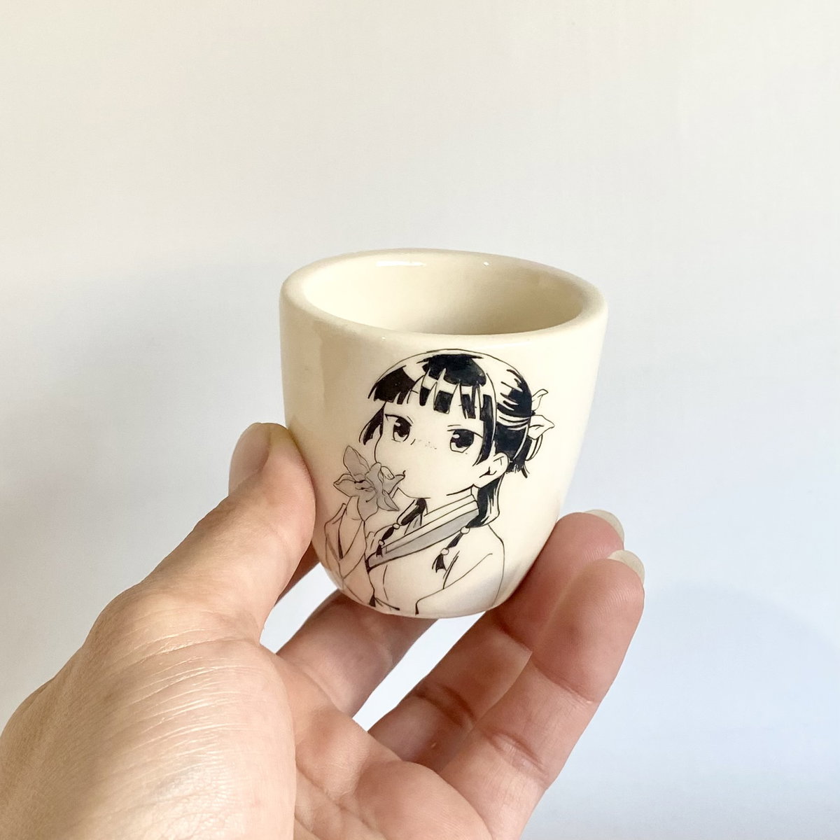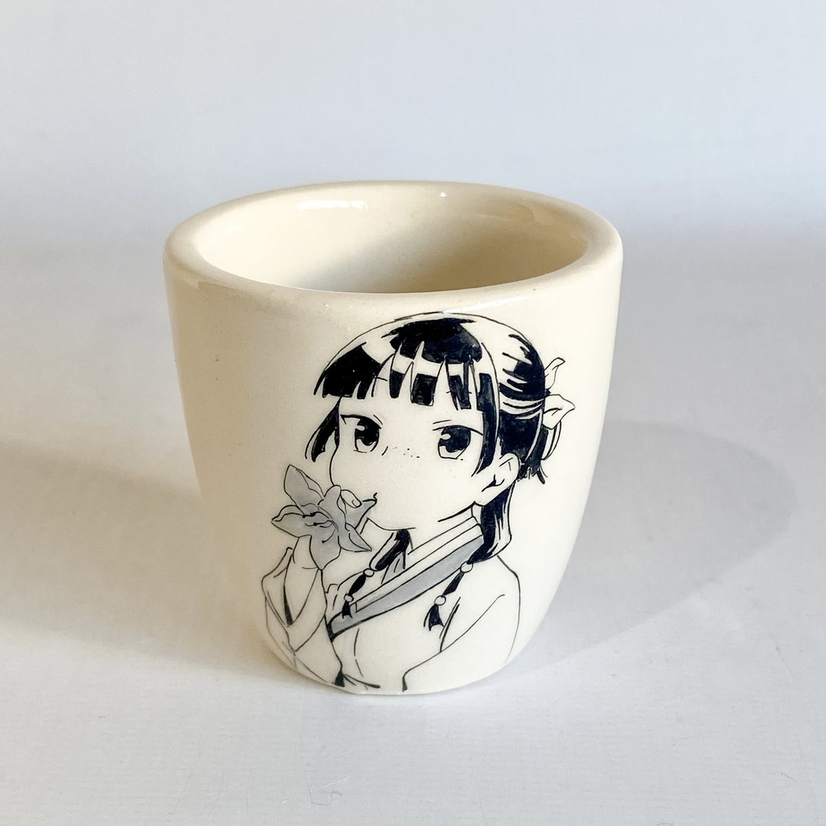 Vasito pequeño de cerámica ilustrado a mano.