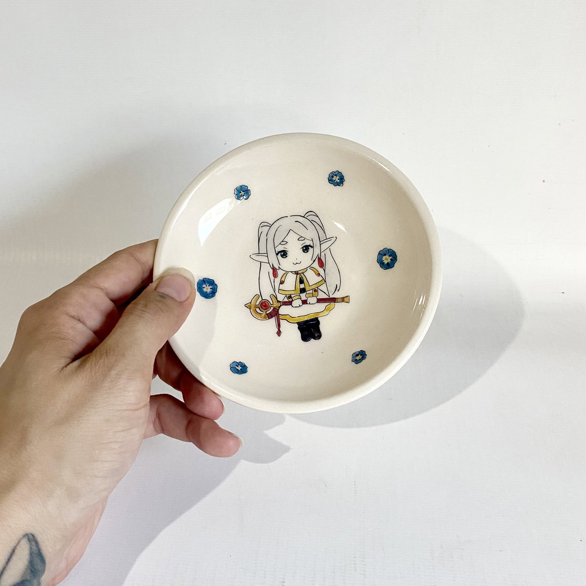 Plato pequeño de cerámica ilustrado a mano.
